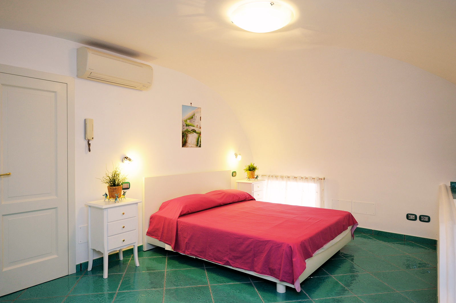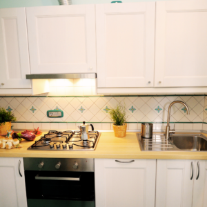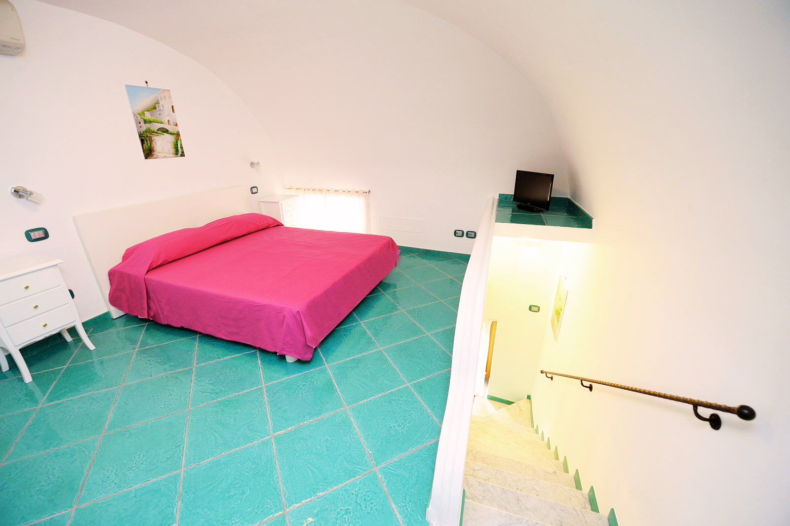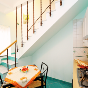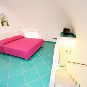 L’appartamento dispone di una cucina attrezzata; un bagno con ampio piano doccia e bidet; una camera da letto soppalcata con letto matrimoniale e, sempre nello stesso ambiente, un comodo divano letto per due persone. Per accedere all’appartamento è necessario salire una breve rampa di scale di 15 gradini.