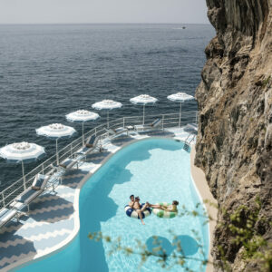 Il Beach Club dell’Hotel Miramalfi è un’oasi di pace e bellezza incastonata nella roccia. La piscina d’acqua salata è la location ideale per trascorrere delle ore in totale relax.