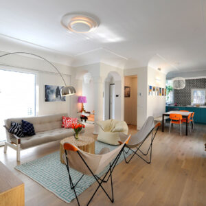 L’appartamento è stato completamente ristrutturato nel 2020 in collaborazione con un rinomato team di architetti italiani. È dotato di mobili di lusso, elettrodomestici e pavimenti in legno di prima qualità. Dispone di una cucina attrezzata, 3 camere da letto, soggiorno, 2 cucine, 4 bagni e due balconi con vista sulle montagne e sul mare.