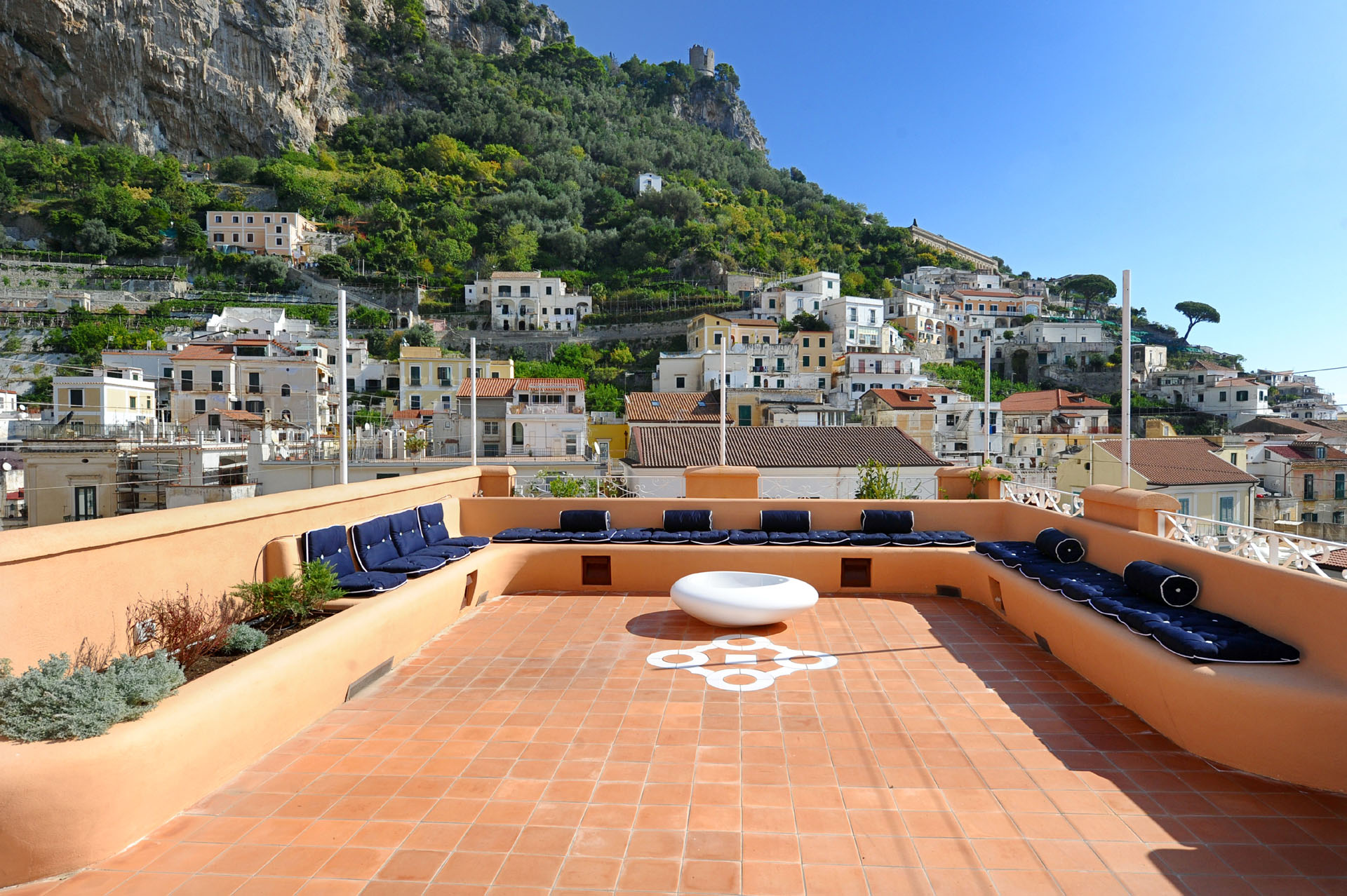La struttura vanta un’esclusiva terrazza di 90 mq, facilmente raggiungibile attraverso un’elegante scala interna con una magnifica vista che unisce le pittoresche montagne circostanti, la maestosa cattedrale e il mare. Una location ideale con vista sul mare dove concedersi un aperitivo o un momento di relax al sole durante le calde giornate estive.