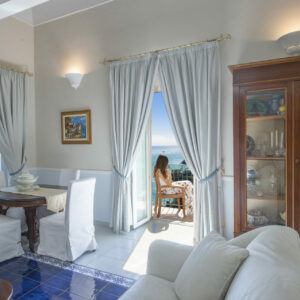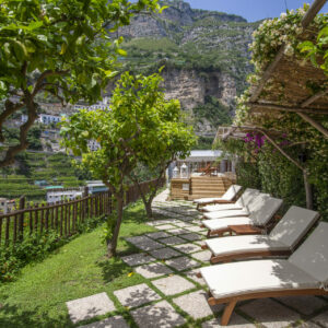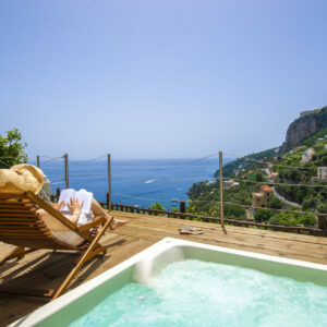L’area esterna presenta un limoneto con solarium panoramico vista mare di 200 mq e dotato di Jacuzzi, area gym attrezzata, zona relax e un living con la possibilità di organizzare piccoli eventi.