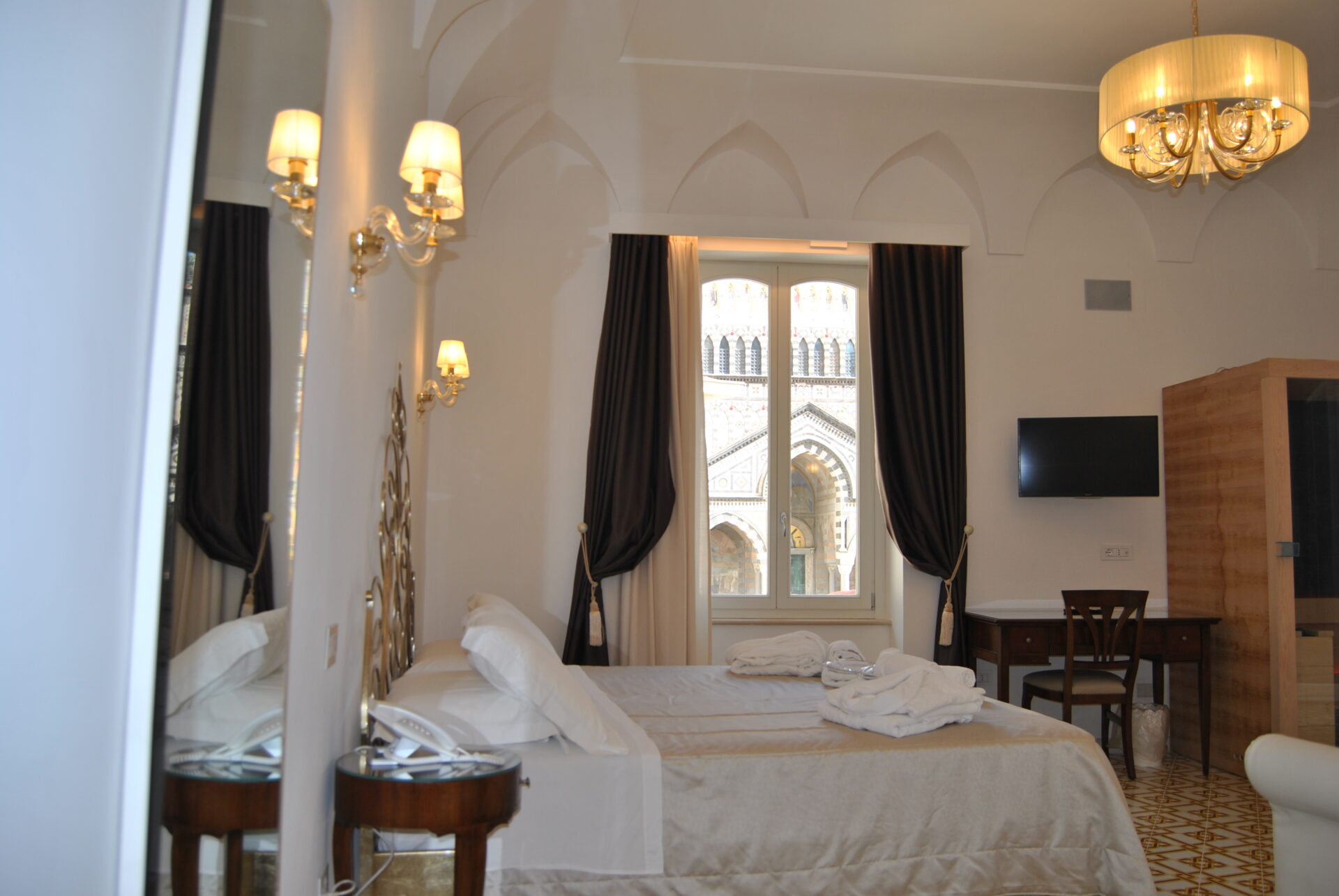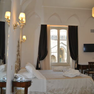 Das Hotel, das sich im zweiten Stock eines historischen Gebäudes befindet, verfügt über zwei Zimmer: die Superior Suite City View ‘S. Andrea’ (40 m²) und die Junior Suite City View ‘Tari’ (30 m²). Von beiden Zimmern aus hat man einen einzigartigen Blick auf die Stadt und den spektakulären alten Amalfi-Dom. Die Superior Suite bietet mit ihrem eleganten Schlafsofa bequem Platz für bis zu drei Personen, während die Junior Suite maximal zwei Personen beherbergen kann.