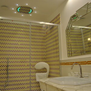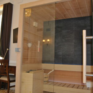 Die Superior Suite verfügt außerdem über einen Entspannungsbereich mit Kinedo-Sauna und ein Badezimmer. Beide Zimmer verfügen über eine große beheizte Duschwanne und sind mit Toiletten der Marke Sbordoni ausgestattet, einem renommierten Markenzeichen der Keramikhersteller aus Florenz.