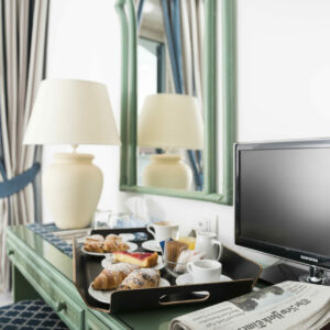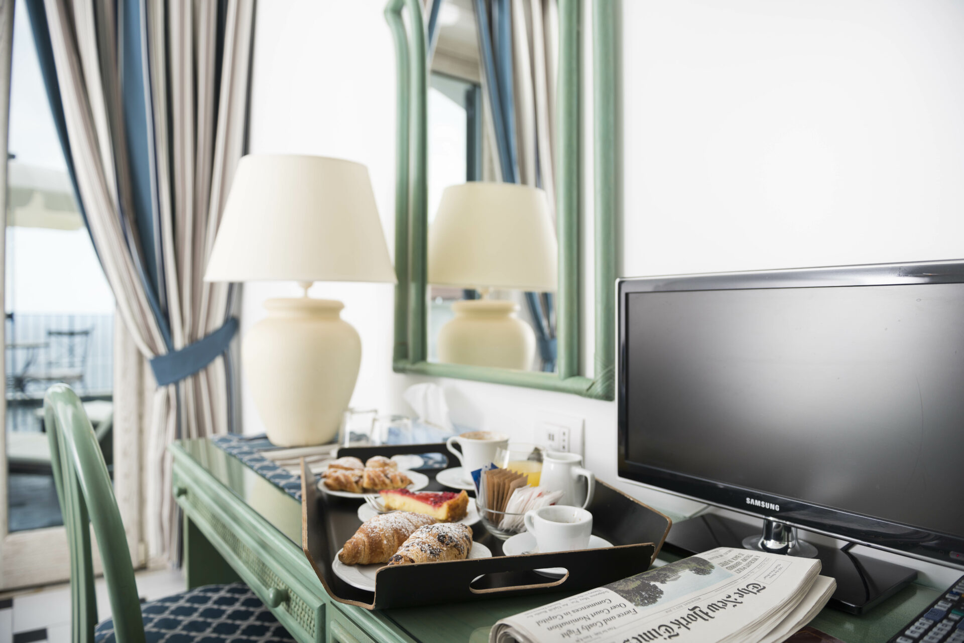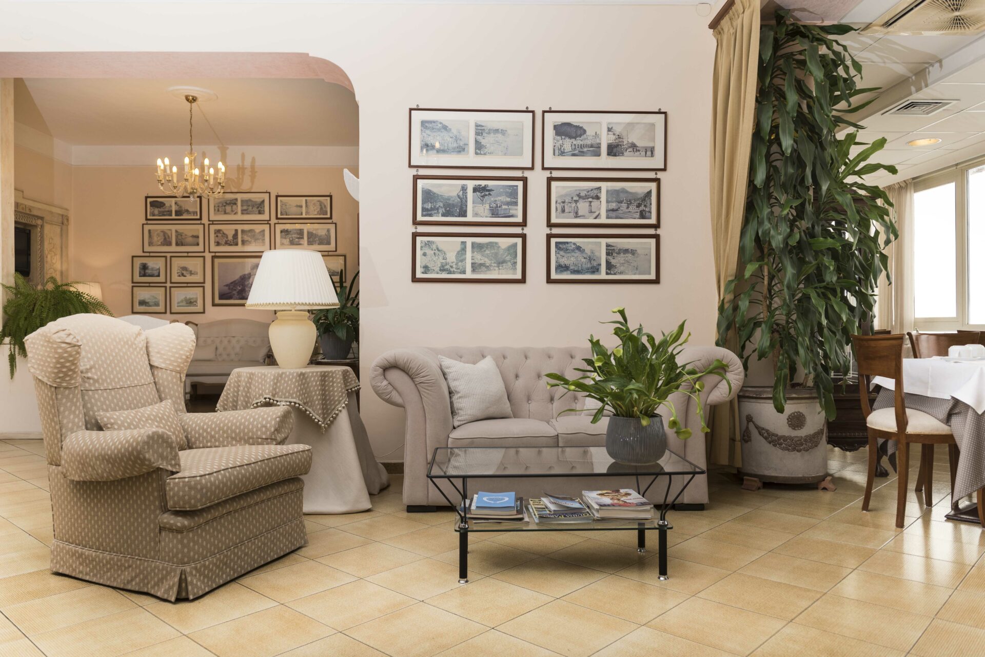 Das Frühstücksbuffet mit Barbedienung wird im Zimmer mit Panoramablick auf die Bucht von Amalfi serviert. Der Raum ist in drei Entspannungsbereiche unterteilt, in denen Sie ein Getränk zu sich nehmen, Musik hören, ein gutes Buch lesen oder mit Ihrem PC/Smartphone über den kostenlosen Wi-Fi-Service surfen können.