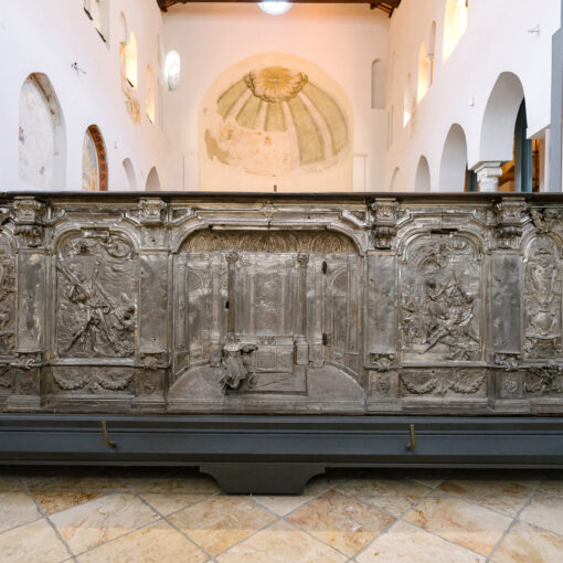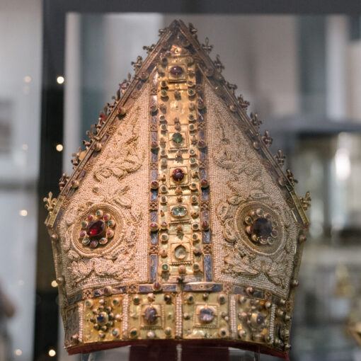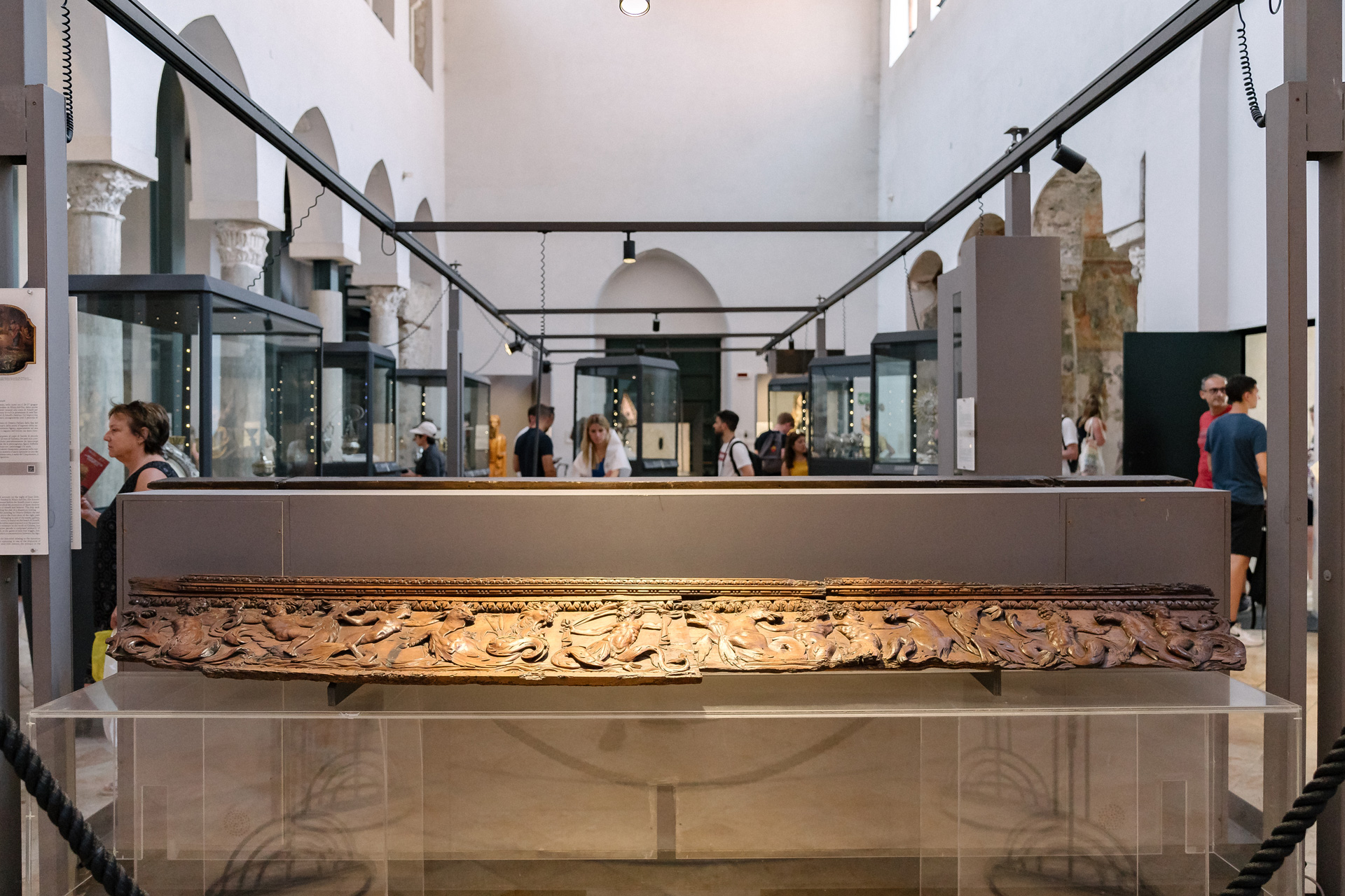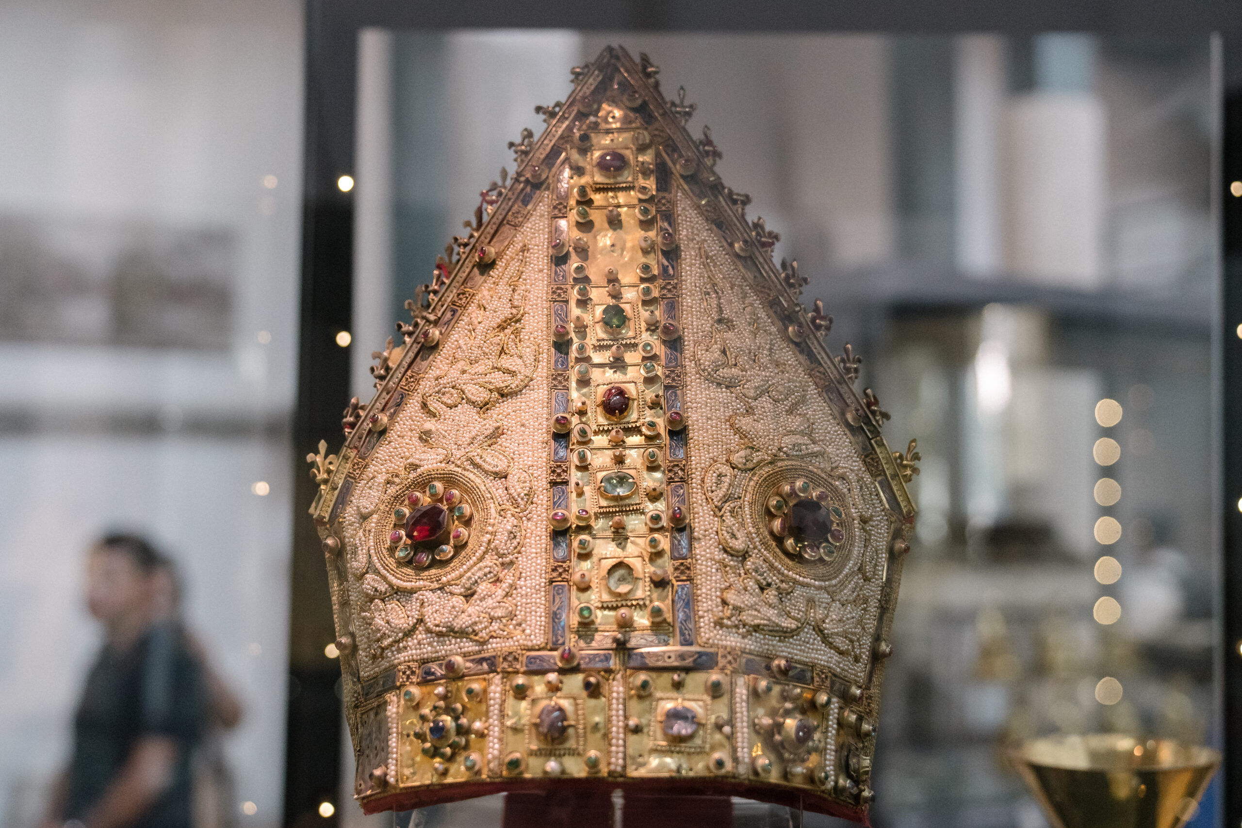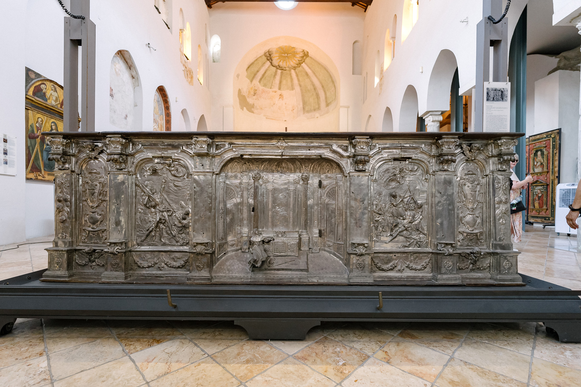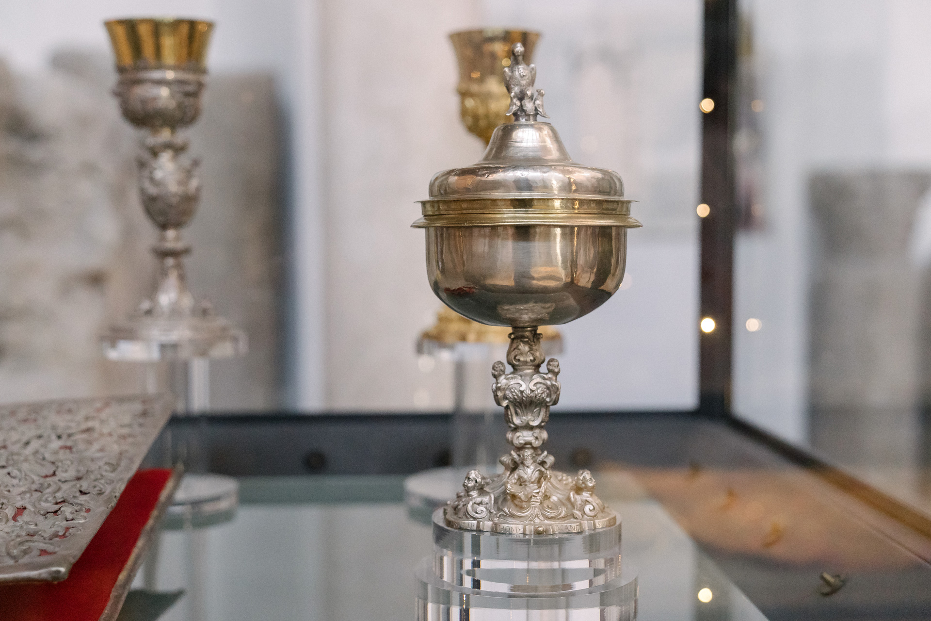Zu sehen sind Gegenstände aus dem 12. und 18. Jahrhundert, wie silberne Reliquienschreine, Kragen, Kreuze, Vasen und Kelche, sowie steinerne Artefakte, Flachreliefs aus Marmor, Kapitelle, Fragmente von Mosaiken der alten Domfassade, Fresken, Skulpturen und Holzstatuen.