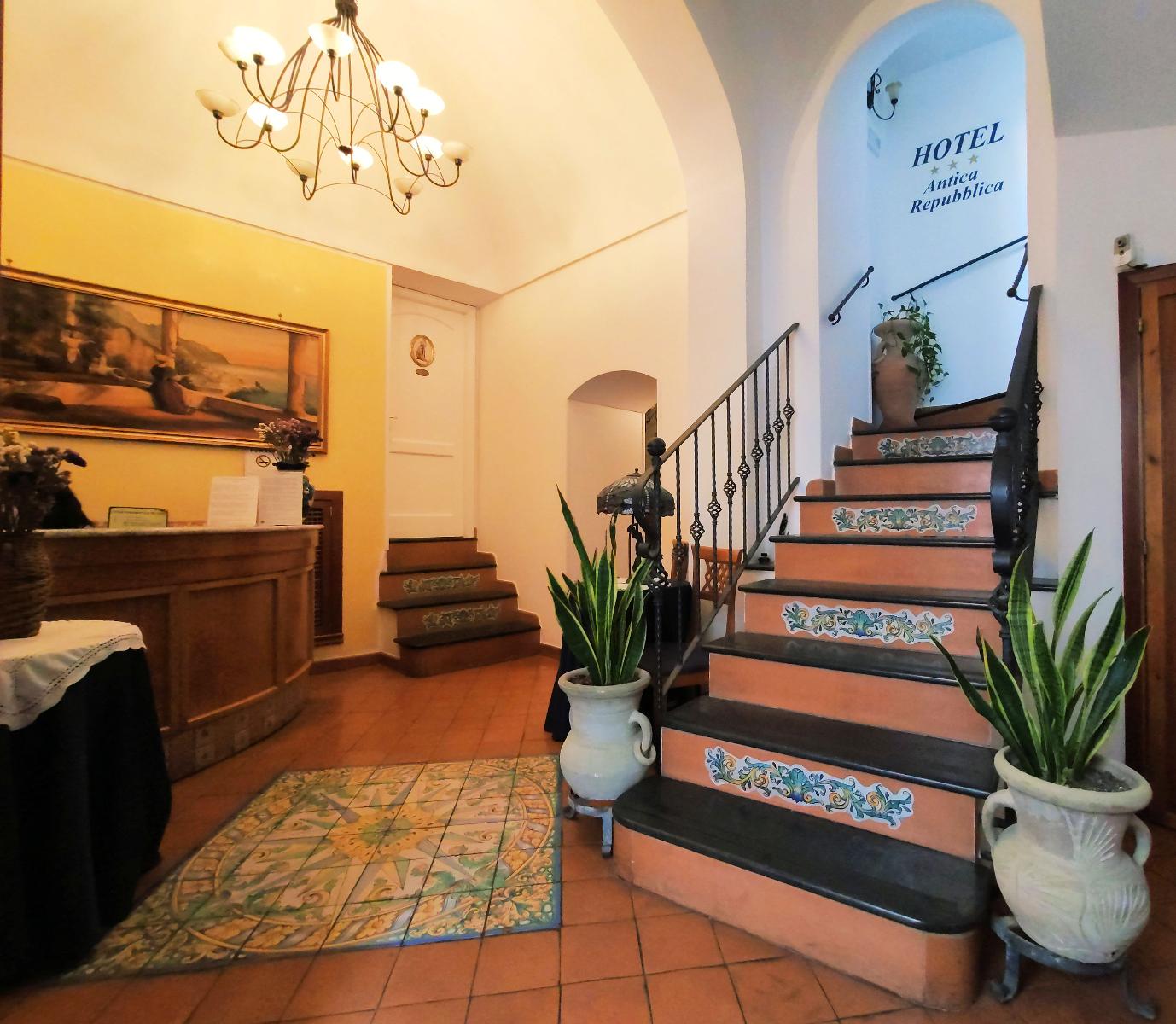 Hotel Antica Repubblica is an ancient 10th-century building located in one of the alleys of Amalfi’s historic center overlooking the main street. The property, reached by 29 steps, is located only 50 meters from Cattadrele, 150 meters from the beach, and 200 meters from the port and bus station.