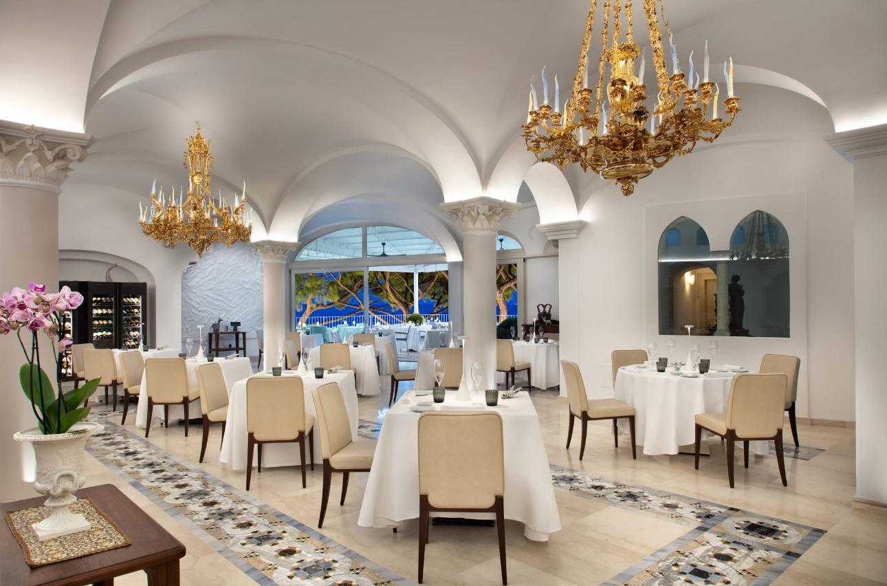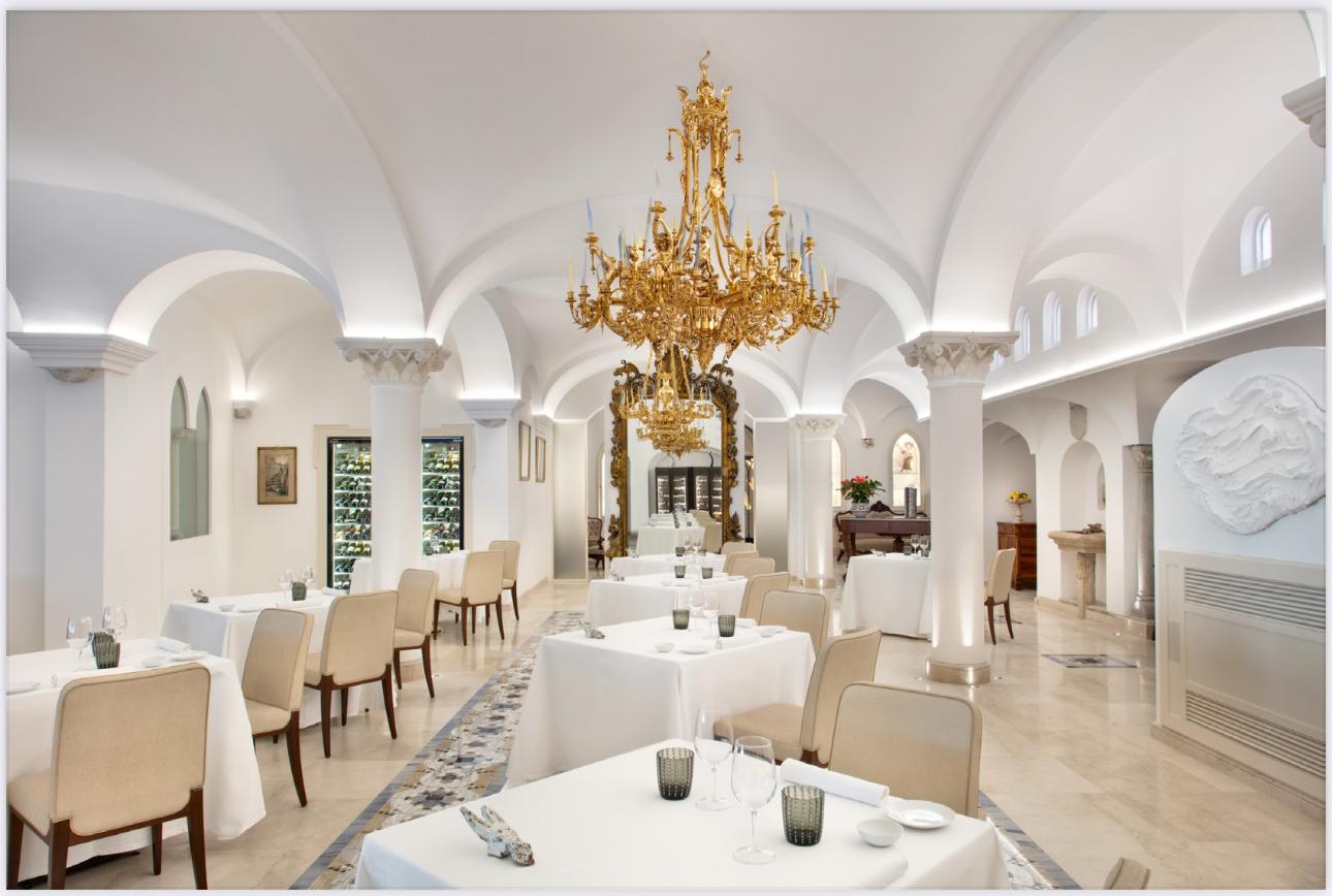 The restaurant boasts a large room with a maximum capacity of 80 covers and a romantic terrace overlooking the Amalfi waterfront with a capacity of 36 covers.