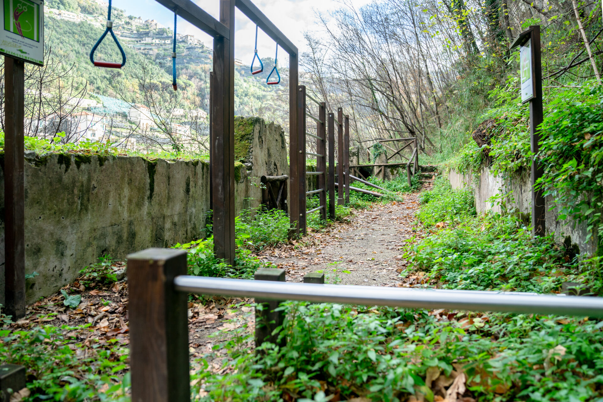 The equipment, installed in a cool, tree-shaded area next to the Canneto River, is all made of wood and is set up along the tourist trail that leads from the Chiarito climb towards the valley’s old paper mills. Benches, platforms, hurdles and wall bars for the perfect workout to regenerate both your body and your mind.