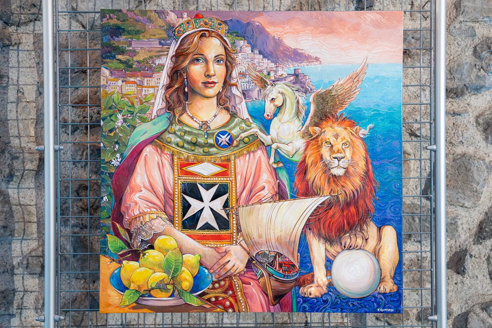 Se trata de cuatro caballeros, llamados“Milites“, cuyas figuras aparecen en un fresco de la milenaria abadía de Santa Maria dell’Olearia de Maiori, dos mercaderes, el primero perteneciente a la nobleza amalfitana, el otro expresión de la clase llamada“mediocres“, y dos mujeres nobles: la Ducissa, consorte del duque, patricio y antìpato Mansone I, y la Ducissa Regale, esposa del duque corrector Giovanni I, cuyas referencias visuales proceden de otras tantas esculturas que se remontan respectivamente a una Dama di Scala y a Sigilgaida della Marra….