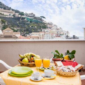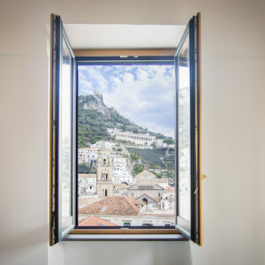 Desde la casa hay unas vistas impresionantes del mar, la majestuosa catedral de Sant’Andrea y las frondosas montañas que rodean Amalfi.