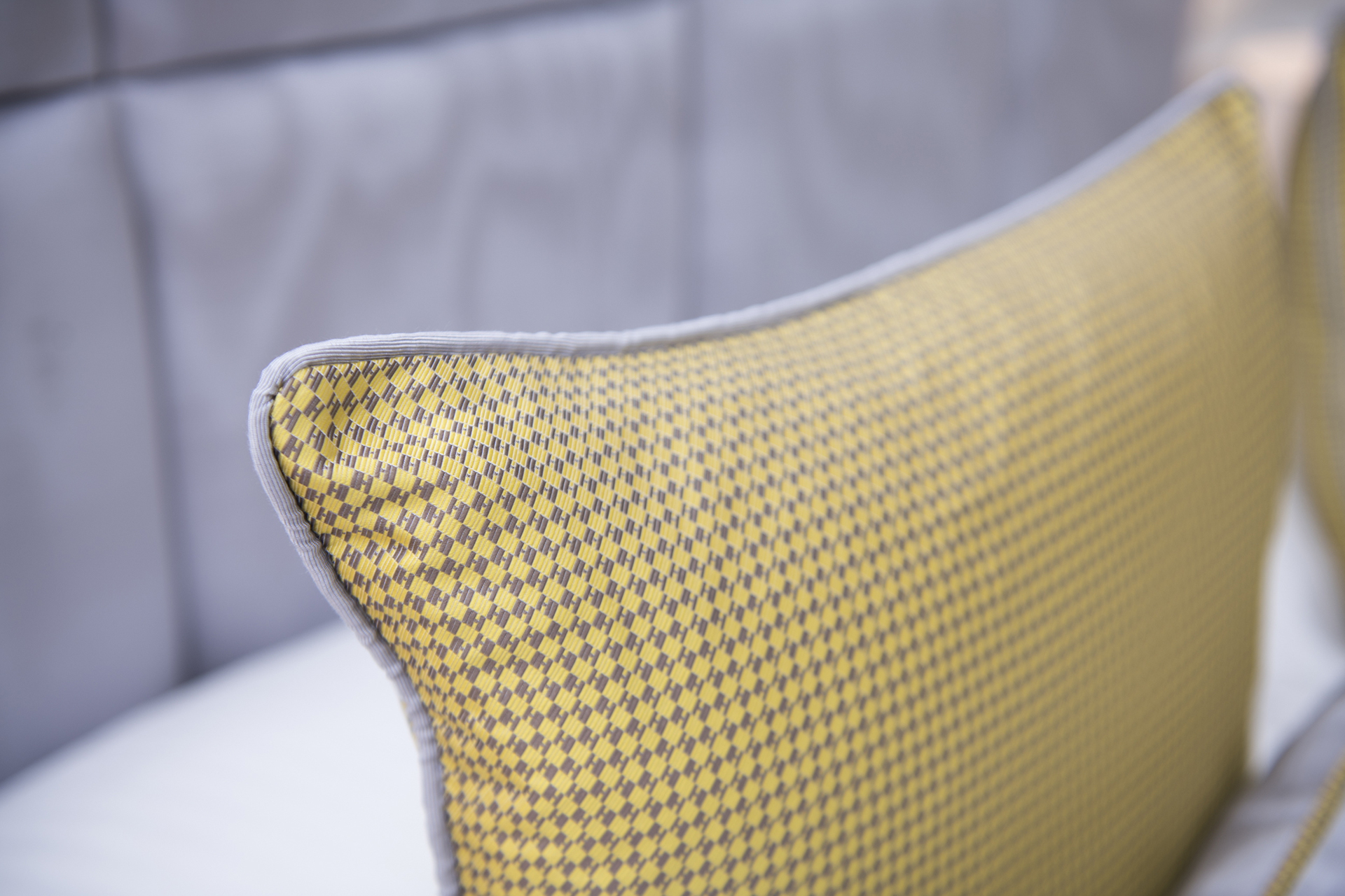 El suelo es de mármol de Carrara, Pietra Brown y Pietra Grey. Las cabinas de ducha están alicatadas con cerámica Pecchioli. También se eligieron materiales naturales para las camas, como las telas de los cabeceros y los sillones de seda, como Dedar.