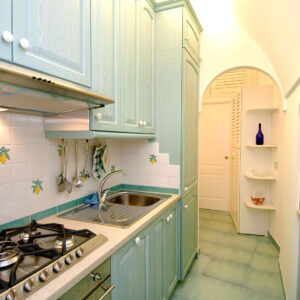 El apartamento Quattro Passi consta de: una cocina totalmente equipada con fogones, horno, frigorífico y lavavajillas; un salón con sofá y zona de comedor; un dormitorio doble conectado al salón/comedor por una puerta corredera; y un cuarto de baño completo con ducha.