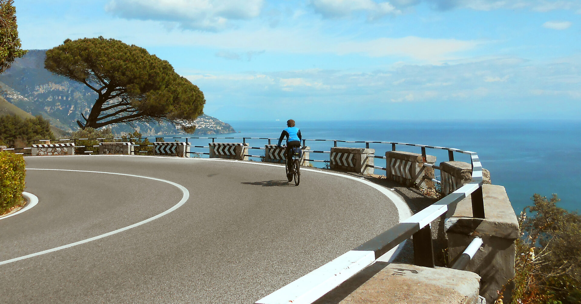 Qual è il miglior modo per andare alla scoperta della Costiera Amalfitana, se non attraversandola in bicicletta? Pedalare e sentire la brezza del mare sulla pelle, ascoltare il suono del vento e ammirare la costiera in tutto il suo splendore, scivolando ad un ritmo naturale tra piccoli borghi, mete famose, punti panoramici e angoli nascosti.