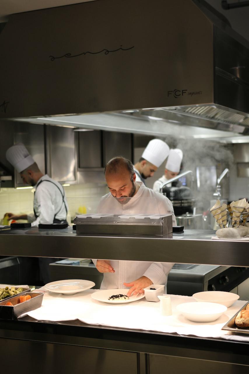 Le nom Sensi, quant à lui, découle d’un concept très précis, car la cuisine de Tormolino joue avec les sens, alors quel mot pourrait mieux résumer son message ?