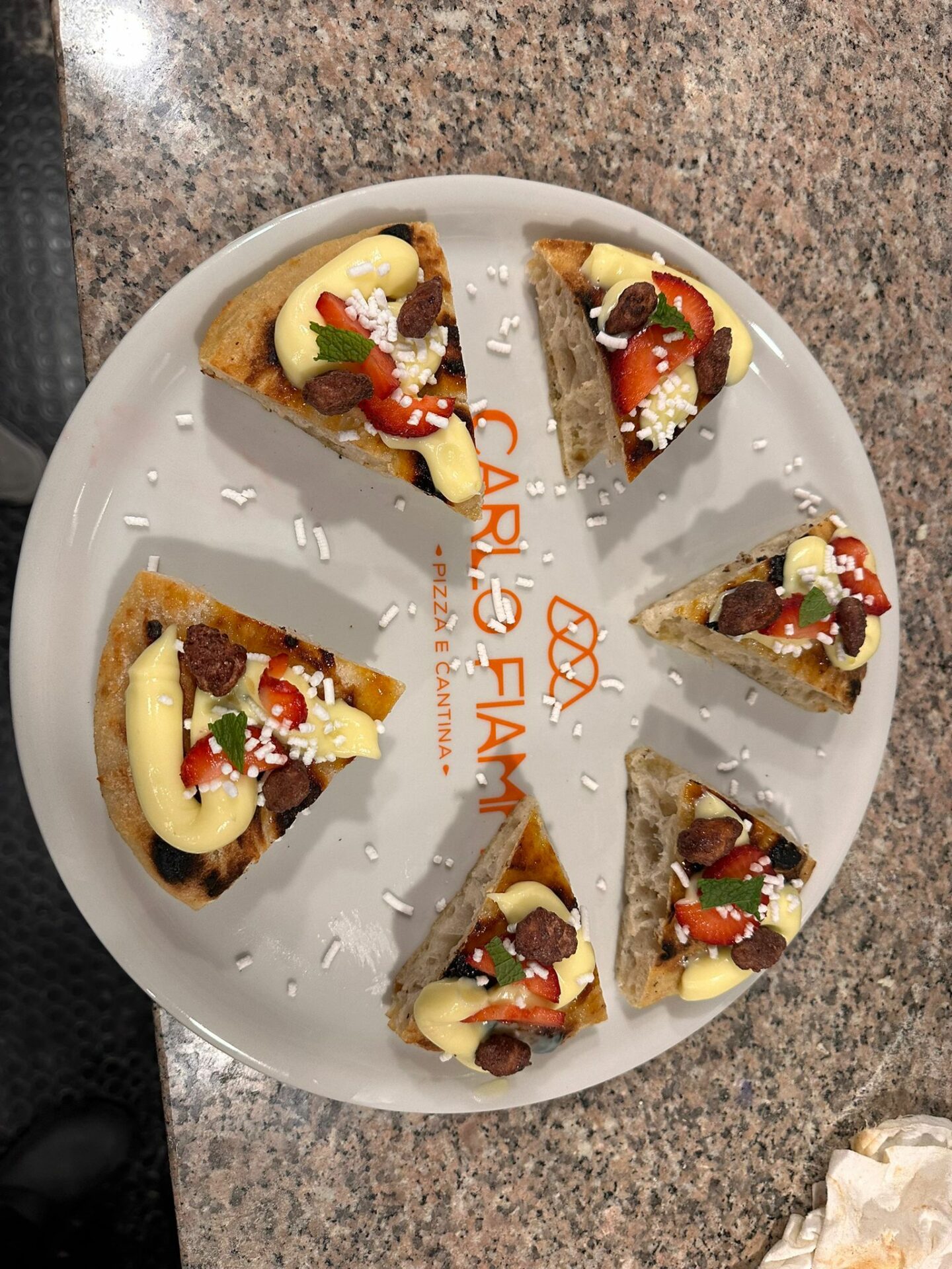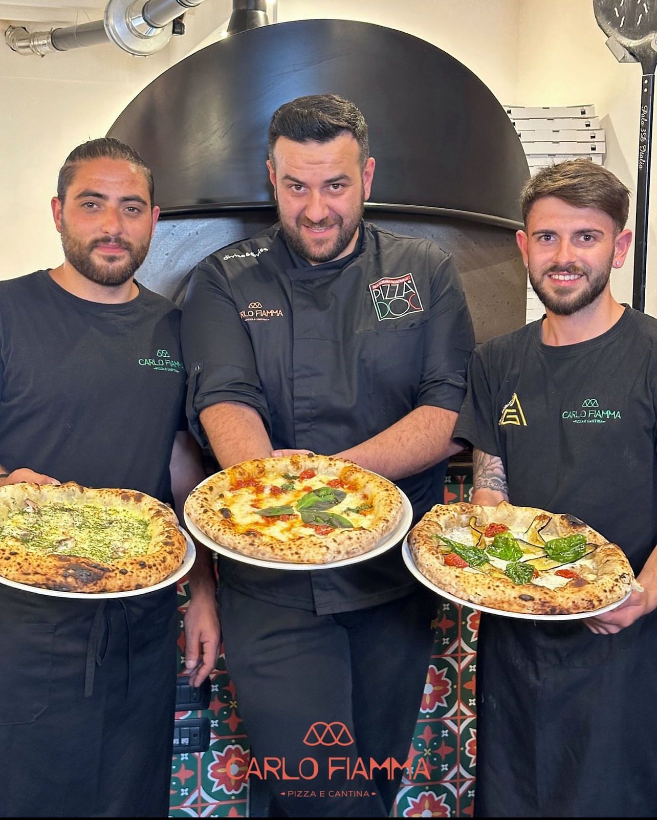 La pizzeria, ouverte tous les jours pour le déjeuner et le dîner, est dirigée par le pizzaïolo Carlo Fiamma, qui allie les saveurs contemporaines de ses plats, frais et de la plus haute qualité, aux recettes traditionnelles transmises par sa famille.
