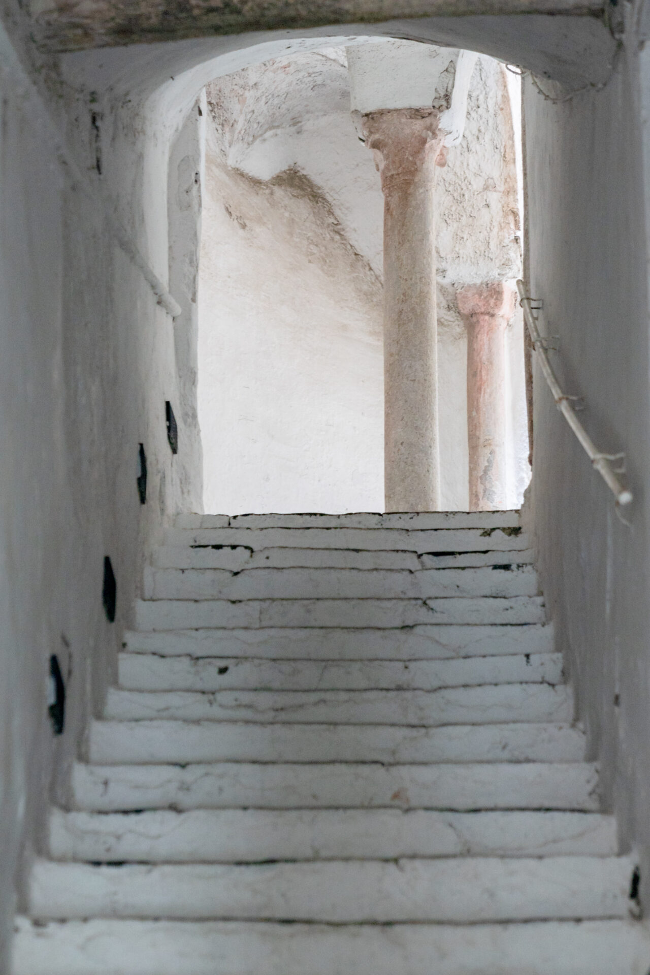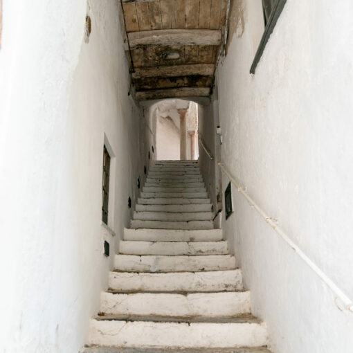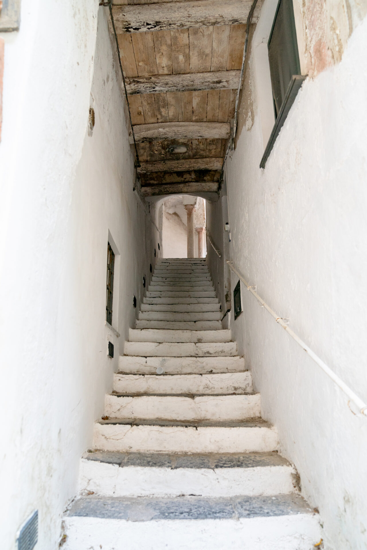 Dans les étages inférieurs se trouvaient la « camminata », une salle à manger avec une cheminée, et les filatures dans lesquelles les femmes tissaient principalement de la laine. Construites en encorbellement sur les murs extérieurs, les latrines déversaient leurs déjections directement dans la rivière, la mer ou les jardins potagers. La toiture de la domus pouvait être couverte comme un toit ou avec des dalles. Des gouttières étaient positionnées en saillie sur les loggias supérieures.