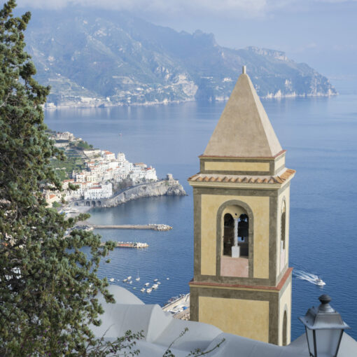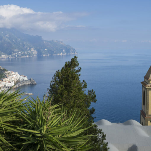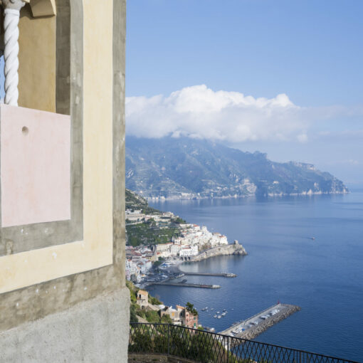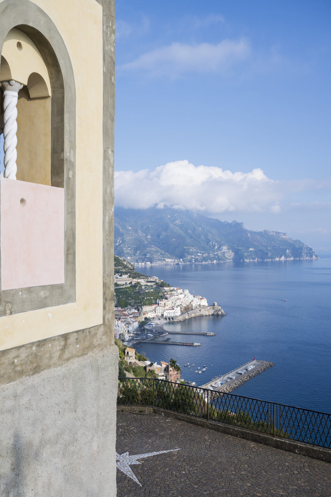 Le due navate, illuminate da tre bifore con colonnina centrale in marmo, terminano con altrettante absidi: in quella di destra è collocata la tavola manierista dell’Assunta, opera del pittore maiorese Giovannangelo d’Amato; mentre davanti all’abside dell’altra navata si trova l’altare maggiore, anch’esso realizzato negli anni ’60, con colonnine e capitelli in marmo su cui poggia la mensa. Sopra l’altare maggiore è ancora presente un crocifisso ligneo medievale, definito miracoloso dallo storico Francesco Maria Pansa.