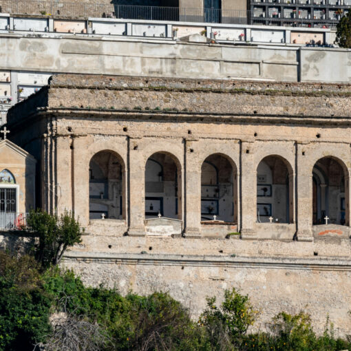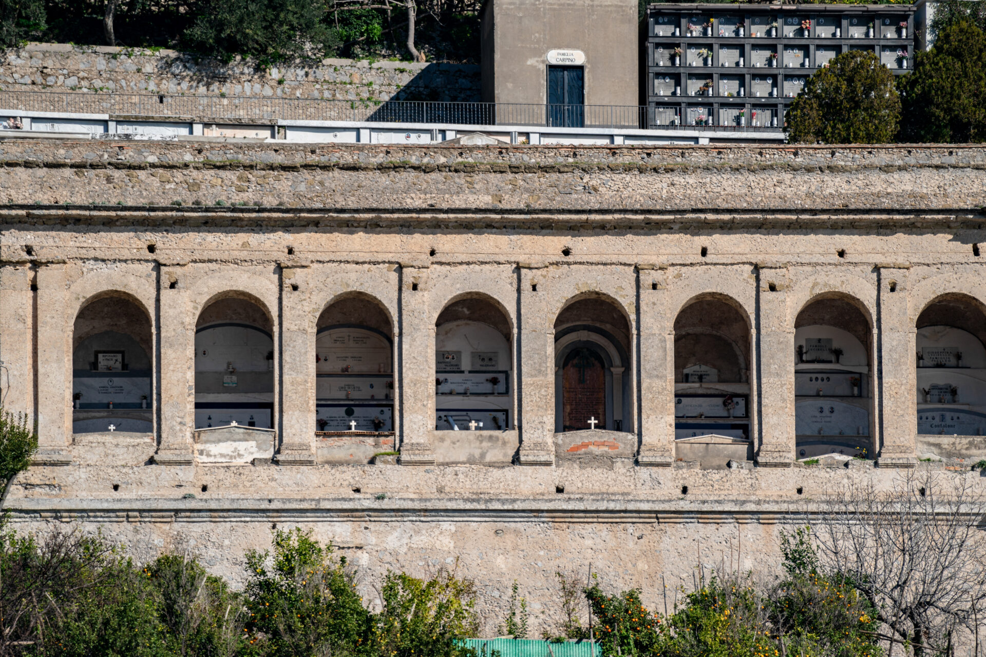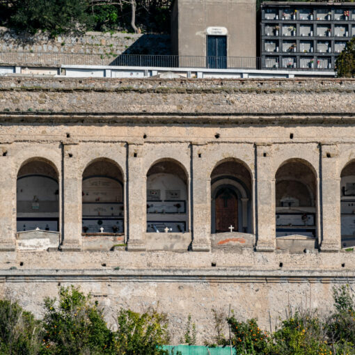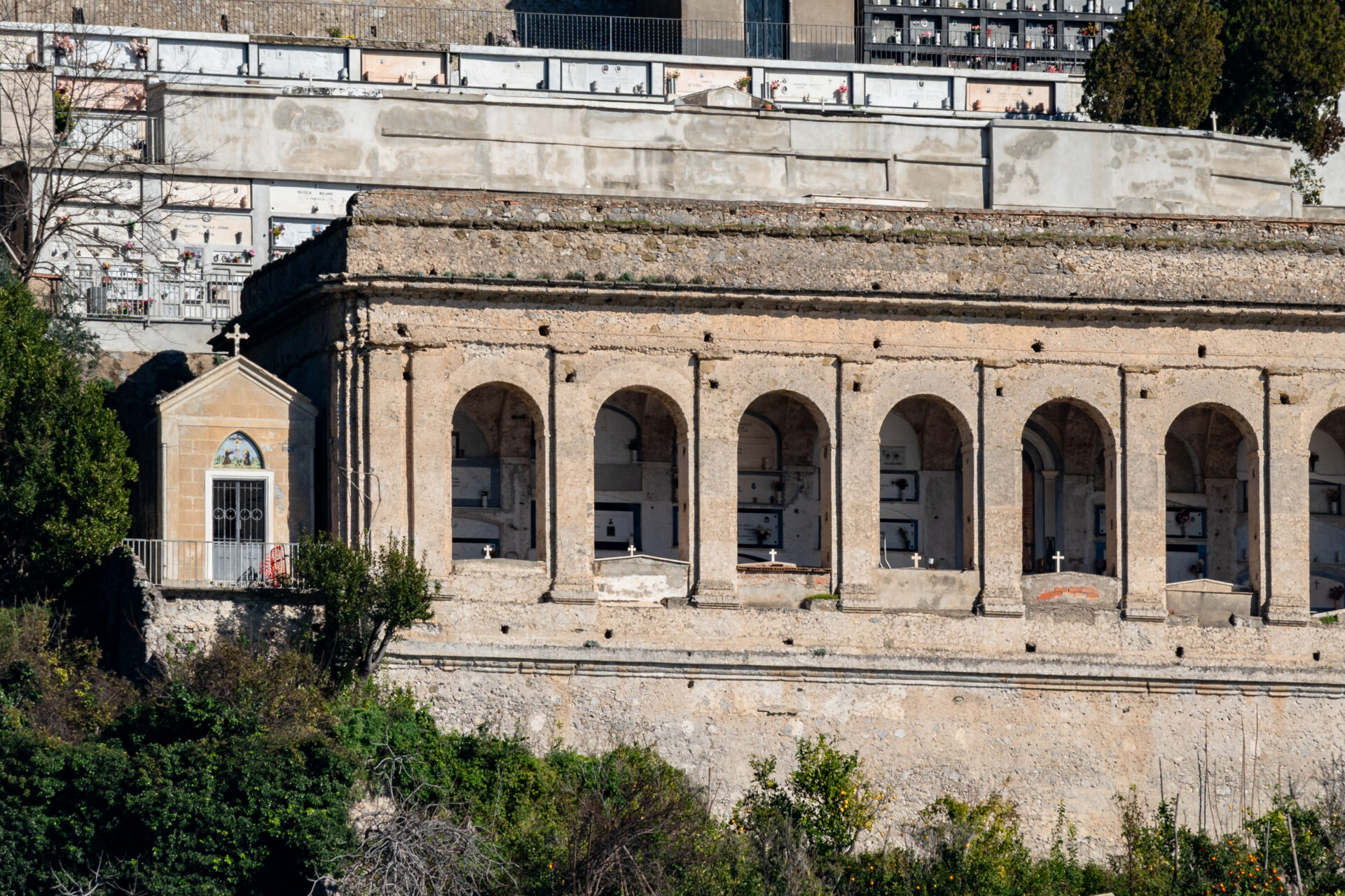 Il cimitero monumentale si contraddistingue per l’imponente colonnato in tufo che domina il profilo della città. Il cimitero venne realizzato nel 1852 al posto dell’abbandonato monastero benedettino femminile fondato nel 980 dal duca Mansone I e dedicato a S. Lorenzo del Piano.