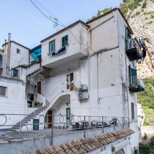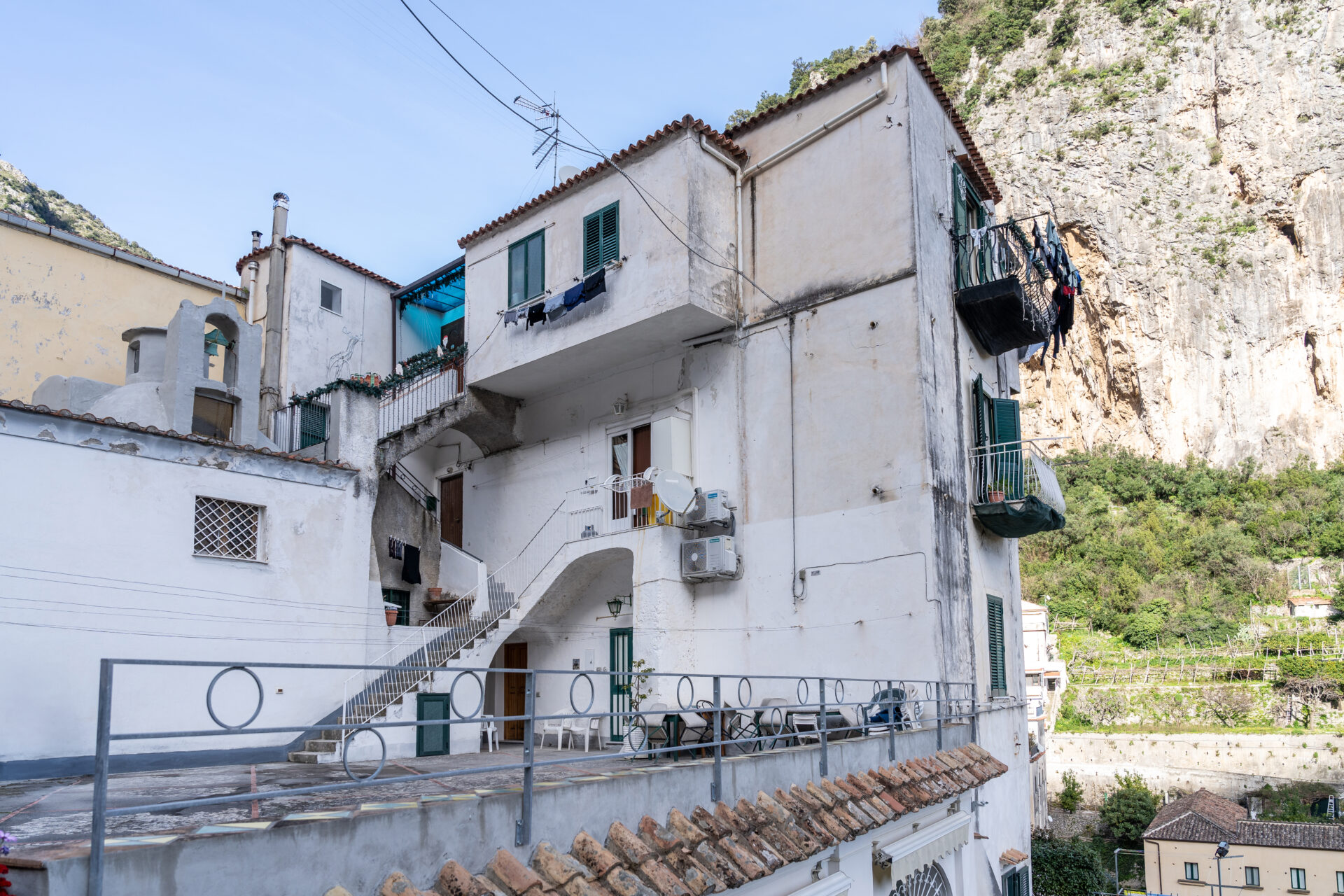 Lungo il lato ovest dell’edificio si trova un lungo corridoio monastico coperto da volte a botte ribassate, tipiche dell’architettura medievale amalfitana. Poco più in basso, la piccola cappella, fondata probabilmente nello stesso secolo e rimaneggiata in epoche successive, è costituita da un unico ambiente coperto con volta a botte ribassata. Al di sopra dell’altare, caratterizzato da un complesso marmoreo policromo di recente fattura arricchito da un’icona raffigurante la Madonna del Carmine e il Bambino tra i SS. Andrea e Basilio, si innalza una cupola che all’esterno presenta una monofora a tutto sesto con una piccola campana.