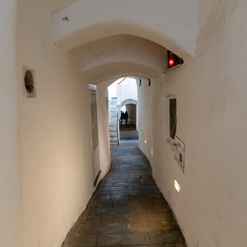 In  questo  suggestivo  vicolo,  denominato  Supportico  Rua,  si  trovano  i  resti  di  un  singolare  bagno  arabo  del  XIII  secolo,  che  faceva  parte  di  una  domus  aristocratica  medievale  di  cui  si  conservano  ancora  oggi  volte  a  crociera,  rocchi  di  colonne e capitelli classici e medievali.