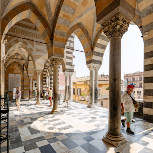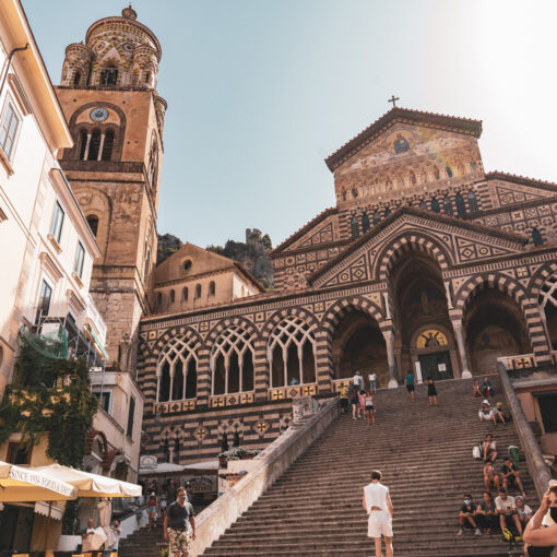 La Cattedrale di Amalfi è il monumento più importante dell’Antica Repubblica Amalfitana. Costituito da due basiliche accostate, un tempo comunicanti, si affaccia sulla piazza più caratteristica di Amalfi, Piazza Duomo, che da sempre detta i ritmi della dolcevita amalfitana. La più antica Cattedrale del IX secondo, dedicata alla Vergine Assunta, prima protettrice di Amalfi, fu costruita sui resti di un’altra cattedrale paleocristiana del VI secolo in forma romanica ed impostata su tre navate. Tra il XVI e il XVIII secolo quella che oggi viene chiamata “Chiesa del Crocifisso” divenne di forma controriformistica e barocca, per poi essere riportata all’antica struttura romanica. La seconda cattedrale, dedicata all’Apostolo Andrea, protettore della diocesi di Amalfi, fu eretta nel 987 per interessamento del Duca di Amalfi Mansone I.